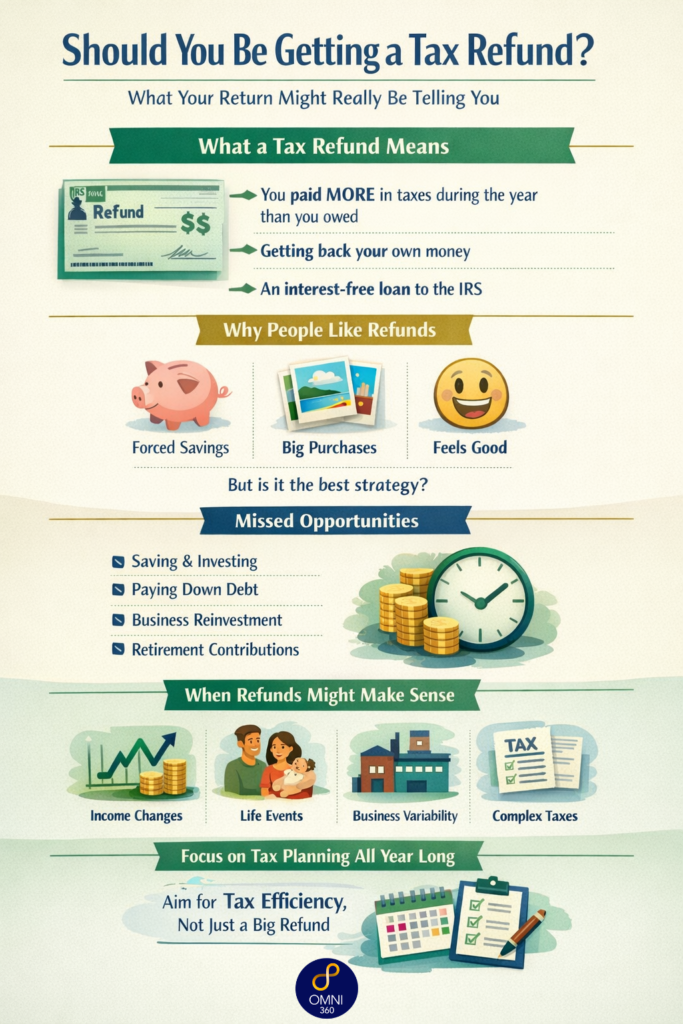 While refunds can feel rewarding, they often reveal something important about how your taxes—and your broader financial strategy—are structured.